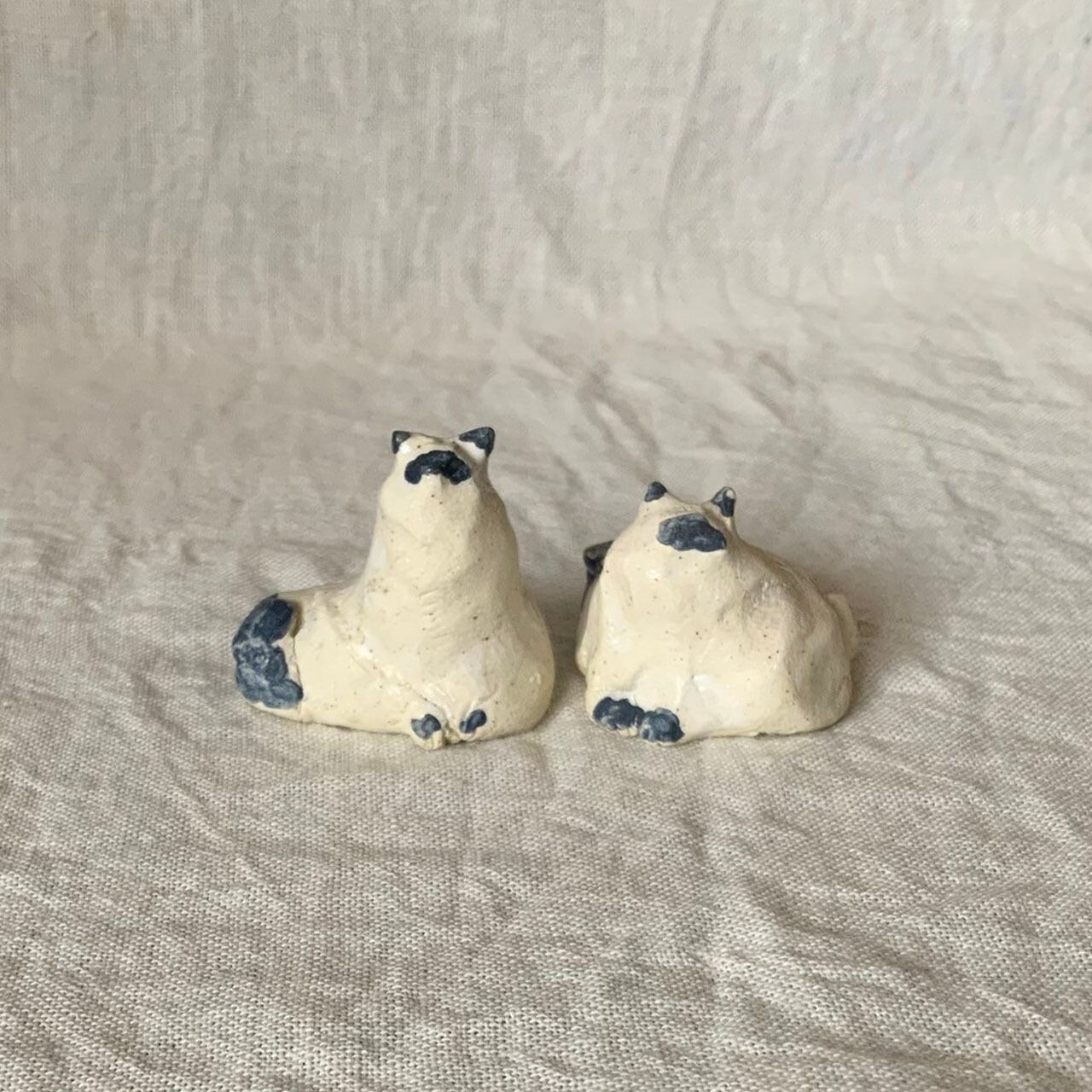 土は白志野(しろしの)を使用した、手のひらサイズの猫の置物です。